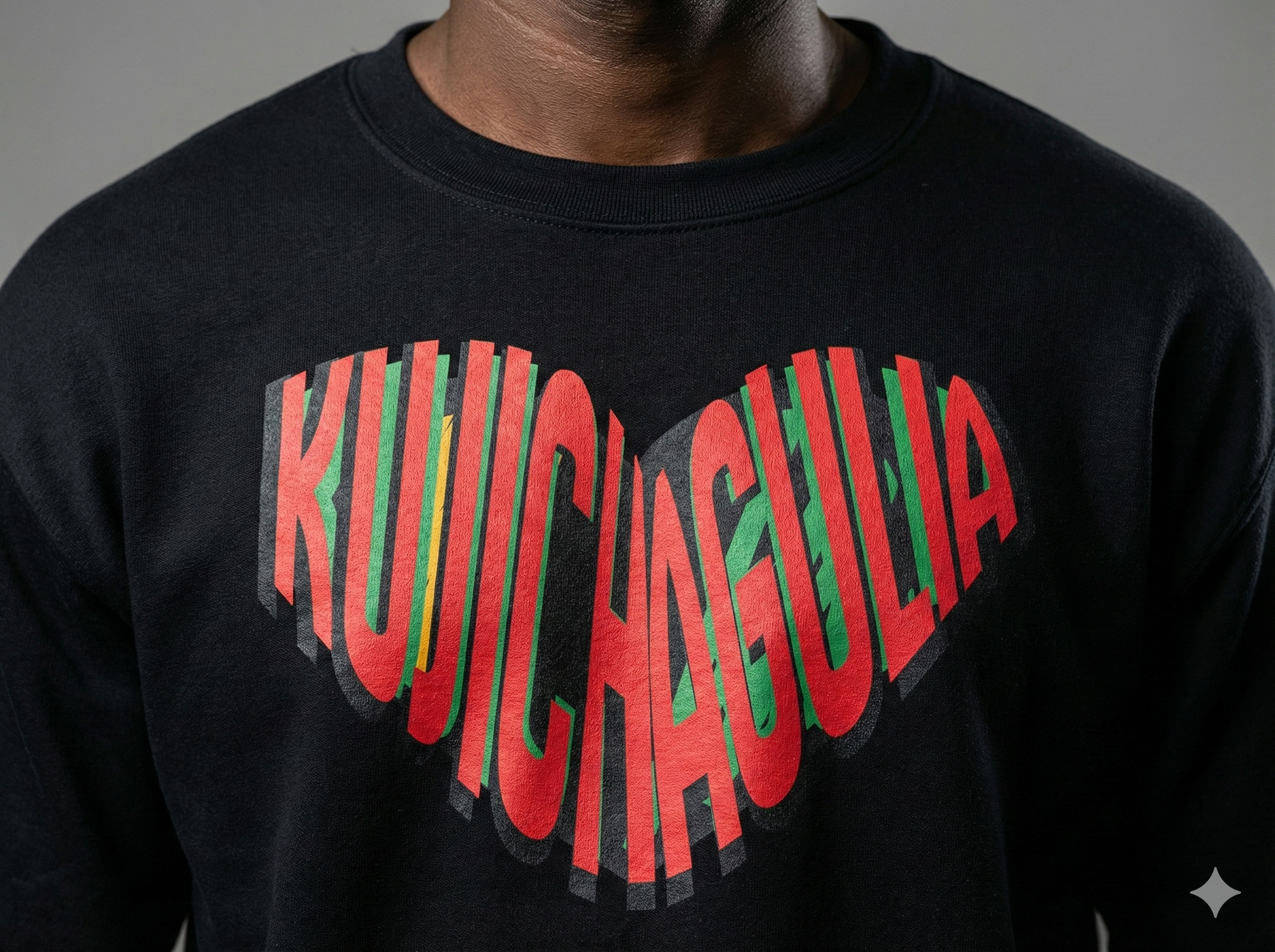 Featuring a striking heart emblazoned with KUJICHAGULIA in vibrant Pan-African red, yellow, and green, this piece transforms self-determination into wearable art. Every thread tells a story. Every color carries meaning. Every wear is a declaration.