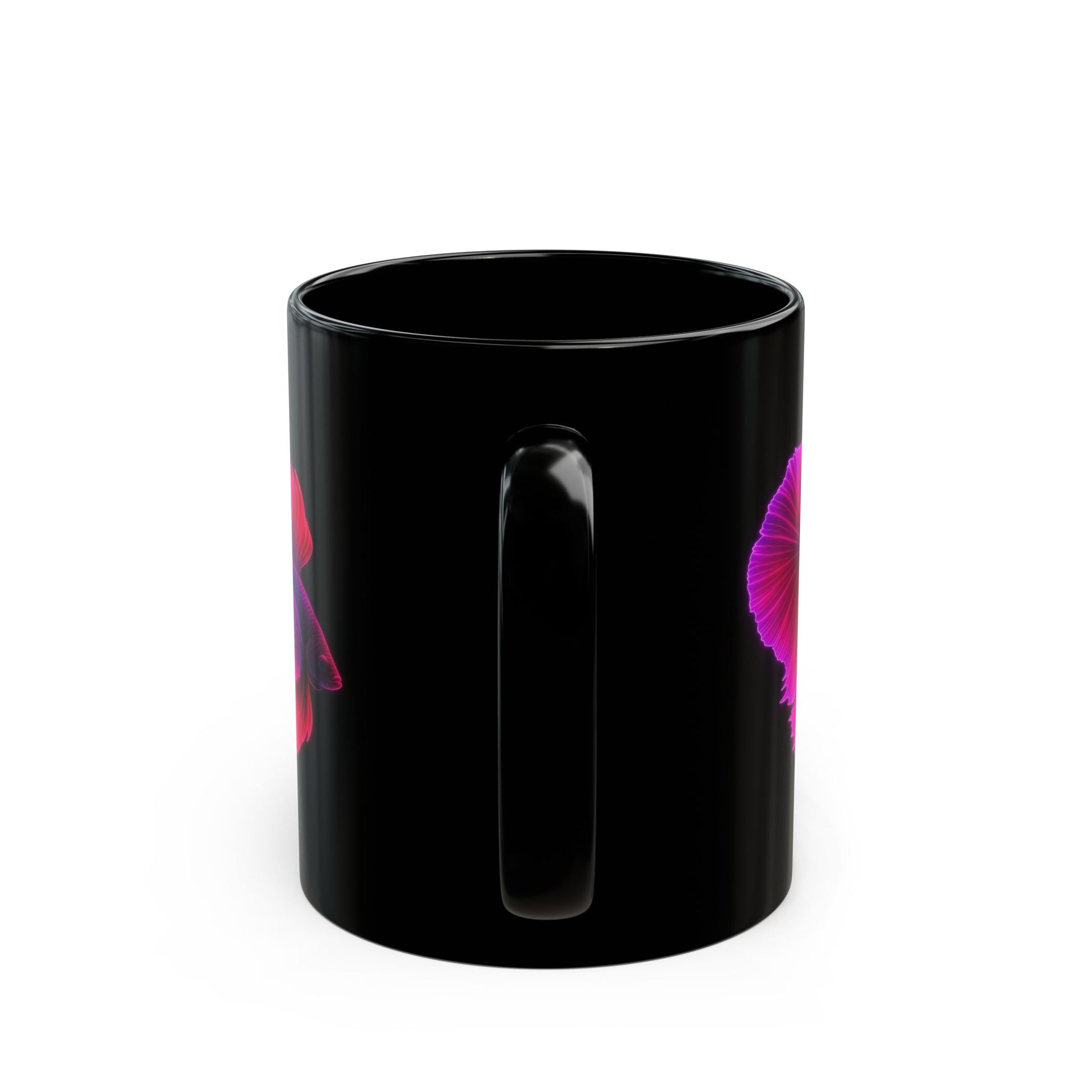 Neon Betta Fish Black Ceramic Mug – 11oz & 15oz | Vibrant Siamese Fighting Fish Art | Trippy Ocean Aesthetic Cup for Aquarium Lovers