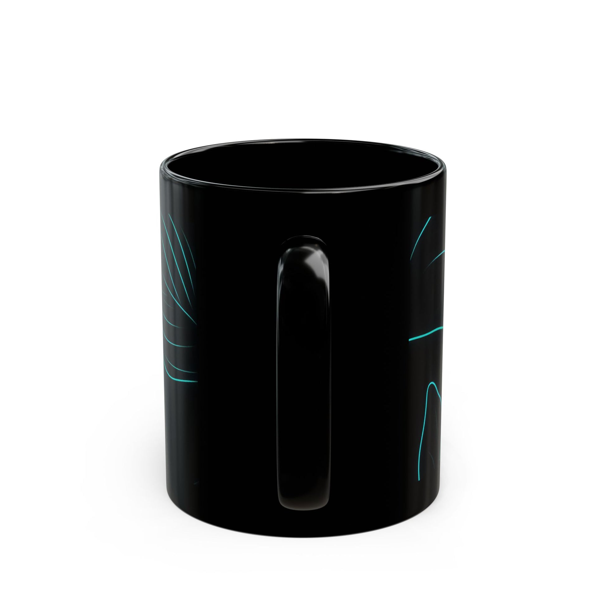Vibrant Neon Heart Leaf Black Ceramic Mug – Botanical Aesthetic Coffee Cup for Plant Lovers, Gift for Nature Enthusiasts, Tropical Jungle Decor
